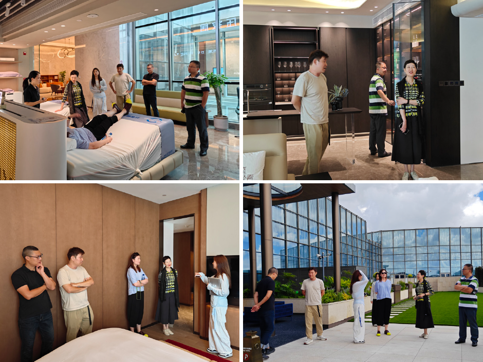 在刘总的带领下,上海家协一行首先参观了梦百合产品展示区,详细了解了梦百合在“0压睡眠”领域的核心技术、产品系列及创新成果。随后,大家实地体验了梦百合0压酒店的客房环境,切身感受梦百合产品在客房中为用户带来的舒适体验。