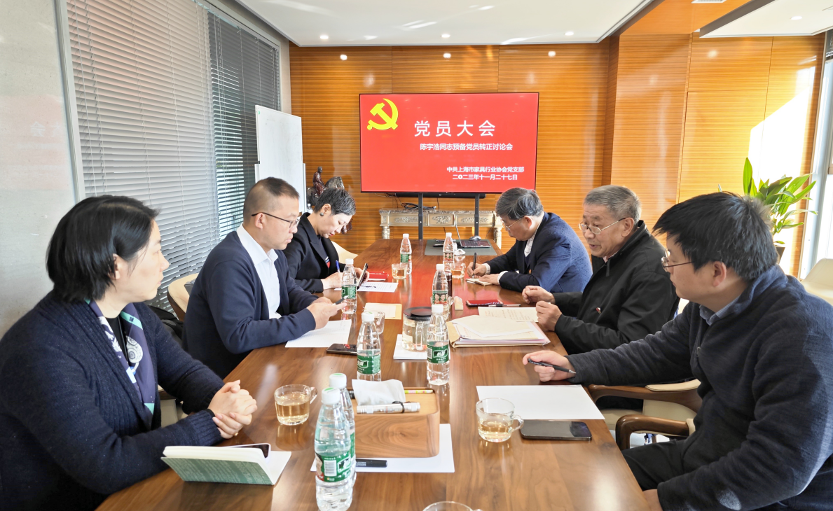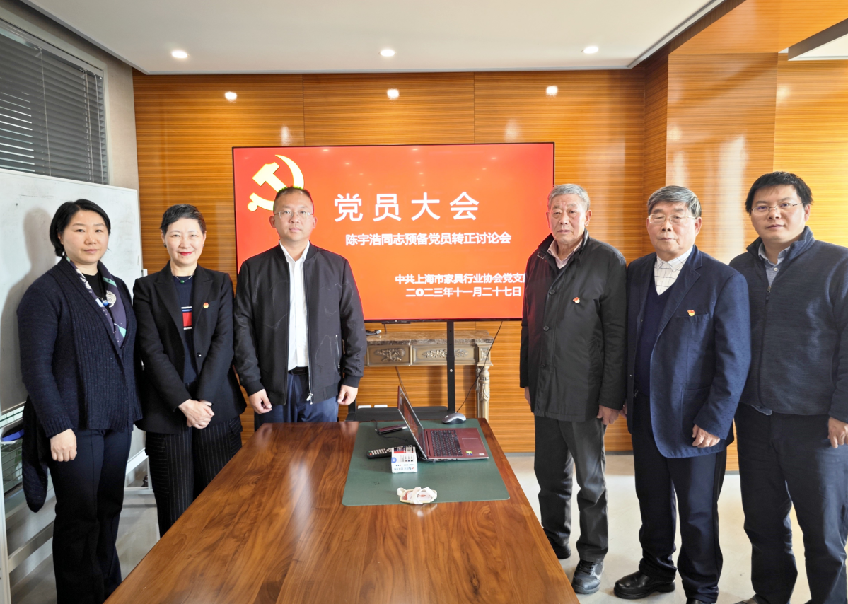11月27日,上海市家具行业协会党支部召开预备党员转正会议,审议预备党员陈宇浩同志的转正事宜。会议由党支部书记徐关荣主持,在上海家协全体党员参加。