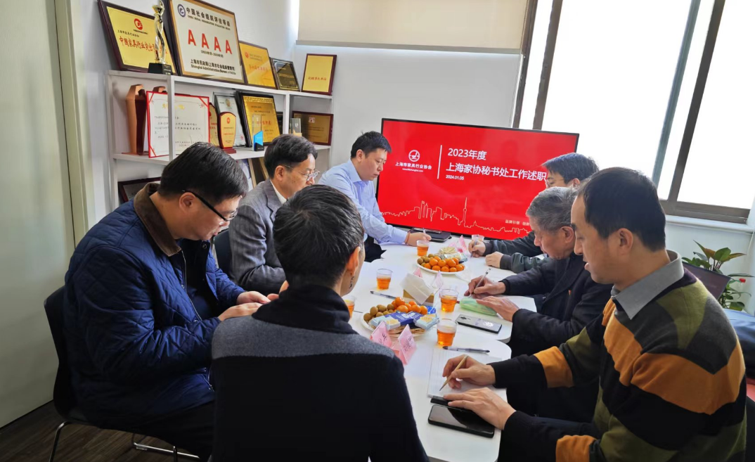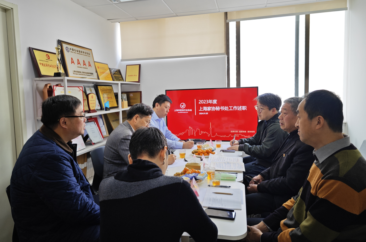 年度秘书处述职评议会。上海市家具行业协会会长高伟,上海家协监事长倪兵及监事会成员、党支部书记徐关荣参加了会议。